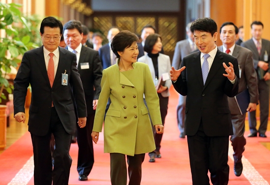 | ▲ 박 대통령이 정권 출범 초 현 부의장(오른쪽)과 담소를 나누고 있다. ⓒ문화체육관광부 |