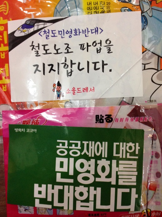 쌍코와 소울드레서. 한 언론에 따르면 지난 8월까지 뜨거웠던 국정원 대선 개입 규탄 촛불집회만 해도 '보이지 않던' 이들이다. 이날 추위 속에서 촛불과 핫팩을 나눠주고 있던 쌍코의 한 회원은 "공공재 민영화에 대해 우리 카페의 관심이 매우 많다. KTX, 의료민영화 등은 정부가 절대로 해서는 안되는 일"이라고 목소리를 높였다.