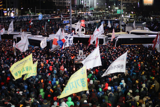 | ▲ 광화문 사거리를 점거하고 시위하고 있는 군중. ⓒ프레시안(최형락) |