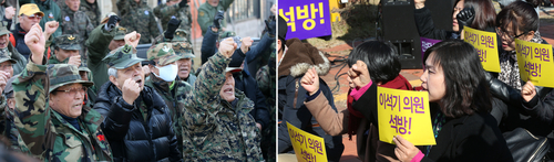 | ▲12일 오후 경기도 수원지법 앞에서 이석기 의원의 엄중 처벌을 촉구하는 보수단체(왼쪽)와 석방을 요구하는 통합진보당의 집회가 열리고 있다. ⓒ프레시안 |