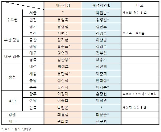 17곳 광역단체장 대진표 거의 완성…'화룡점정' 서울만 남았다