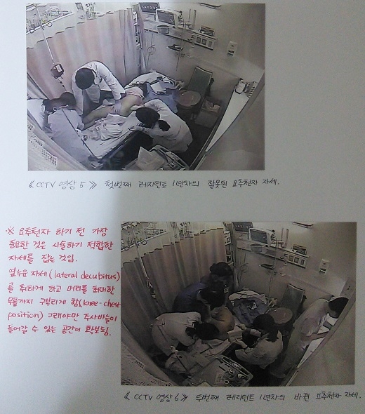 ▲ 유족들이 확보한 요추천자 검사 당시 CCTV 화면 갈무리. ⓒ최윤주