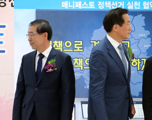 ▲새정치민주연합 박원순 서울시장 후보와 새누리당 정몽준 후보가(왼쪽부터) 19일 관훈클럽 주최 토론회에서 설전을 펼쳤다. ⓒ연합뉴스
