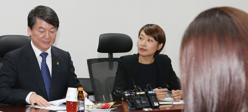 안 대표는 22일 국회 의원회관에서 침묵시위 '엄마라서 말할 수 있다'를 처음 제안한 전주영 씨 등 20~30대 여성 10여 명과 만났다. 인터넷 육아 커뮤니티에서 만난 사이라고 밝힌 이들은, 어린 아이를 떼어놓지 못해 간담회장 옆방에 아이를 재워 두거나 몇 명은 아예 아이를 안고 간담회에 참석했다.