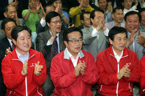 실제, 지방선거에는 과거 친이계였거나 소장파로 꼽혔던 '비주류'들이 대거 후보로 나섰다. 서울의 정몽준, 경기의 남경필, 충남의 정진석, 충북의 윤진식, 대구의 권영진, 제주의 원희룡 후보 등이 그렇다. 친박계는 변변치 않은 '인물' 하나 제대로 내보내지 못한 셈이다. 인천의 유정복, 부산의 서병수 후보가 그나마 '원조 친박'으로 꼽혔다.
