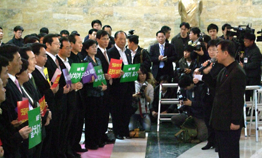 한나라당은 다시 의총을 소집했고 홍 원내대표가 "민주당 쪽에서 원내대표 회동이 없다는데 어떻게 하면 좋겠냐"고 의원들에게 묻자 일부 강경파 의원이 "그걸 우리한테 물어보면 어떻게 하냐"고 거칠게 홍 원내대표를 몰기 시작했다.