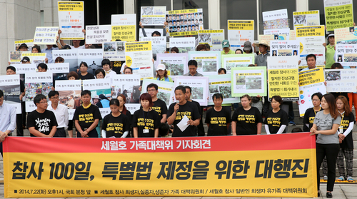 '세월호 참사 희생자·실종자·생존자 가족 대책위원회'와 '세월호 참사 일반인 희생자 유가족 대책위원회' 등은 22일 낮 국회에서 기자회견을 열어 "대통령과 여야 지도부가 약속한 특별법 제정 시한인 7월 16일이 1주일이나 지났음에도 여야 협상이 진척되었다는 소식은 들리지 않고 실망스러운 얘기들 뿐"이라며 "이제 대통령이 특별법 제정을 결단할 때가 되었다"고 촉구했다.