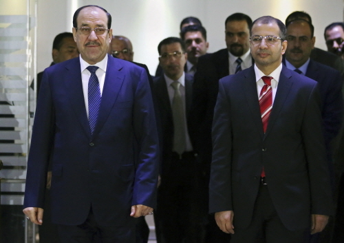 ▲ 미국이 권좌에 올려준 누리 알말리키(왼쪽) 이라크 총리. 3연임을 위해 '헌법 조항'을 내세워 퇴진압력에 맞서고 있다. ⓒAP=연합뉴스