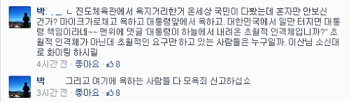 ▲방심위 직원으로 밝혀진 박모 씨가 배우 이산 씨의 페이스북 글에 남긴 댓글. ⓒ최민희 의원실