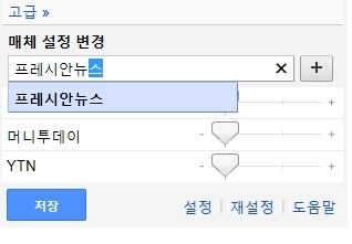 매체 설정 박스에서 프레시안을 검색하시면 프레시안의 뉴스 매체 빈도를 설정할 수 있습니다.