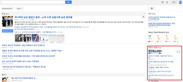구글이 구글 뉴스(news.google.com)에서 새로 시작한 '에디터스 픽' 서비스를 17일부터 시작했습니다. 그리고 프레시안은 이 서비스에 기사를 공급합니다.