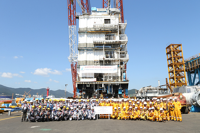 탑재에 성공한 전기&계장 빌딩(Electric&Instrument Building) 모듈은 해저에서 생산된 천연가스를 정제하기 위한 탑사이드 모듈들의 전력 공급 및 전기시스템 제어 기능을 수행한다. 무게가 약 2000톤으로 대우조선해양이 보유한 3600톤급 해상크레인을 이용해 선체 위로 탑재했다.