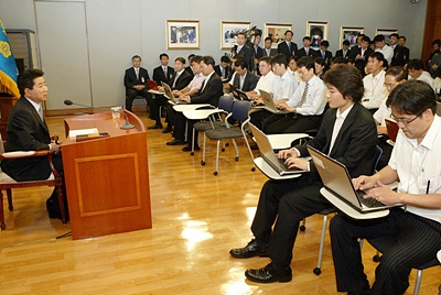 "손학규 후보 쪽에서 청와대 현직 고위 인사들이 '캠프에 참여하지 말라'고 압력을 가한다는 주장을 펴고 있다. 사실인가?"라는 질문에 대해 노 대통령은 "말할 수 있는 문제지만 우리 선거법 체계가 말을 하면 시비 걸게 되어있어 선거법 시비가 될 만한 이야기는 제가 안 하는 게 좋겠다"고만 답했다.