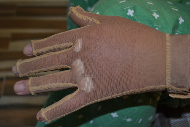 ▲ 압박 장갑을 낀 성준호 씨의 손. ⓒ프레시안(김윤나영)