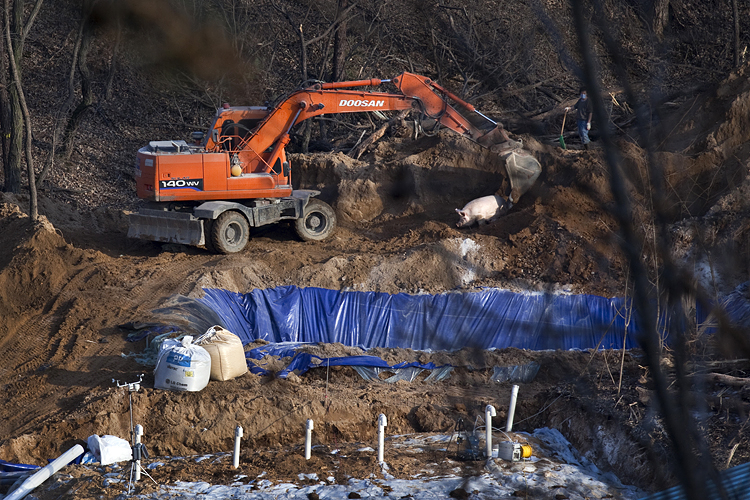방역당국은 의성 농장의 구제역 확진 돼지 32마리와 인근 농가의 사슴 6마리를 매몰 처분했다. 또 안동의 확진 돼지 40마리를 묻고 같은 축사에 있는 200마리도 추가로 매몰하기로 했다.