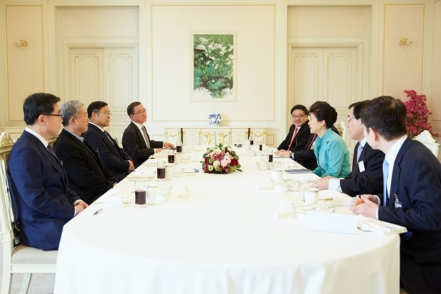 ▲박근혜 대통령이 노사정 대표와 오찬 간담회를 주재하고 있다. ⓒ청와대