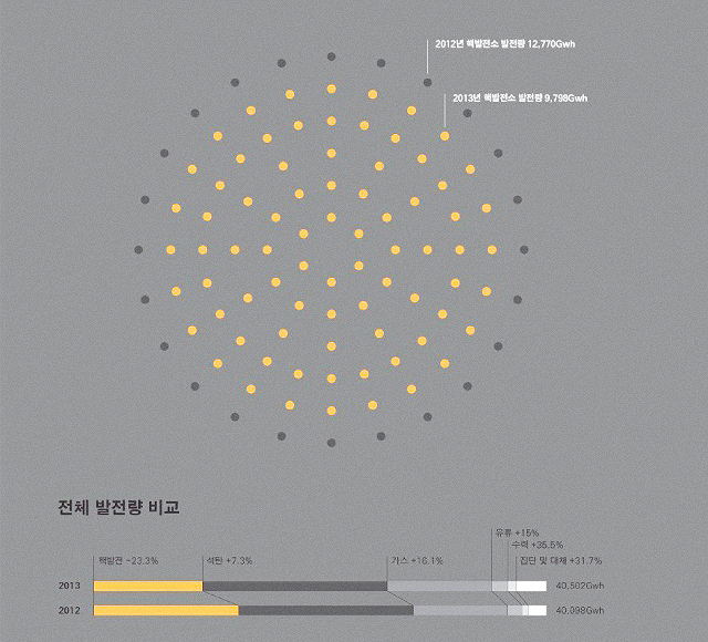 2013년 5월 28일. 핵발전소 부품 시험성적서 위조 사건으로 신고리 2호기, 신월성 1호기 가동이 중단됐다. 그해 6월, 시험성적서 위조 사건 여파로 정비 기간이 연장된 신고리 1호기를 포함해 예방정비와 고장, 재운전 심사를 이유로 멈춰 있던 기존 8개 핵발전소에 두 기가 추가로 중지되며 전체 23기 핵발전소 가운데 10기가 가동을 멈췄다. 전체 핵발전소 설비용량 271만 6000킬로와트(kw)의 37%인 771만 6000kw에 해당되는 규모였다.