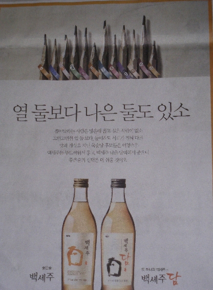 이는 국순당이 지난 10일부터 일부 일간지에 내놓고 있는 백세주 신제품 광고가 정치적 해석의 여지를 남기고 있기 때문이다.