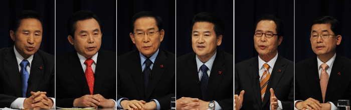 | 이 시간만 넘기고 보자? 이날 토론회는 시간 제약, 재반론 기회와 사회자의 전문성 부족 등으로 인해 각 후보들의 교묘한 '사실 왜곡', '동문서답'이 종종 나타나 눈살을 찌푸리게 만들었다. 대운하에 대한 공방이 이어지는 동안 수세에 몰린 이명박 후보는 "유럽에 2010 계획이라고 있는데 거기 보면 21세기 친환경을 위해서도 운하를 만들어야 한다는 계획을 발표한 바 있다"고 말했다. 이는 이 후보가 항상 운하 성공사례로 꼽는 독일의 사회경제 개혁 프로그램 '아겐다 2010'에 대한 이야기로 보인다. 하지만 지난 슈뢰더 정부 시절 수립돼 메르켈 정부가 계승하고 있는 이 프로그램은 사회보장 축소 등을 담고 있는 신자유주의 개혁이긴 하지만 대운하 등에 대한 내용은 담겨 있지 않다. 또한 문국현 후보는 권영길 후보로부터 '사람중심경제라는 말은 좋은데 문 후보가 KT(한국통신) 사외이사 재직 당시 그 회사는 2만 5000명을 강제퇴직 시켰고 분식회계도 했다. 게다가 당시 KT사장은 지금 창조한국당 공동 대표 아니냐'는 지적을 받자 "잘 몰라서 하는 말인 것 같은데 내가 KT사외이사로 들어간 것은 그 이후"라고 답했다. 하지만 문 후보는 2002년 8월부터 KT사외이사에 임명됐는데 KT의 7차례 걸친 구조조정 가운데 5500명 해직은 2003년 10월에 벌어졌다. 이 밖에 이회창 후보는 '대기업으로부터 불법정치자금을 받은 사람이 정경유착을 혁파할 수 있냐'는 지적에 "권영길 후보도 민주노총으로부터 돈을 받지 않았냐"면서 "적은 돈 받으면 도둑이고 많은 돈 받으면 도둑이 아니냐"고 받아쳤다. 하지만 민주노총에서 권영길 후보에게 '불법 정치자금'을 증여한 적은 없다. |