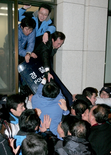 국회 본청에서는 무더기 입장을 시도하는 한나라당 소속 수도권 광역·기초의원, 당협위원장 등 400여 명과 이를 저지하는 국회 경비대원과 신당 당직자, 보좌관 300여 명 사이에 몸싸움이 벌어졌다.