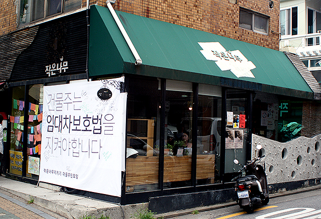 하지만 건물주는 2015년 7월 9일까지 나가줄 것을 최후 통보했다. 법대로 하겠다는 입장이다. 앞서 작은나무 옆에서 27년 동안 세탁소를 운영해온 A씨는 6월 말, 가게를 뺐다. 30대 초반부터 해오던 세탁소를 건물주가 바뀌었다고 하루아침에 '빼앗기게' 된 셈이다.