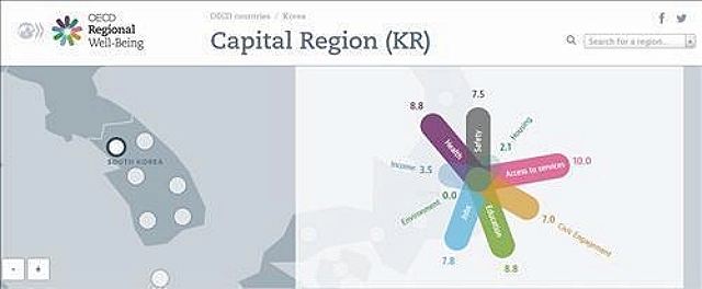 이외에 멕시코, 그리스, 터키 등 상대적으로 경제 규모가 작은 OECD 회원국의 수도권이 주로 한국보다 점수가 낮은 최하위권에 포진했다.
