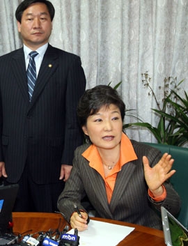 한편 이날 박 전 대표는 "국내에 경쟁자가 없다는 이 대통령의 말씀은 맞는 이야기"라며 청와대를 향해 직접 공세를 펼치진 않았다.