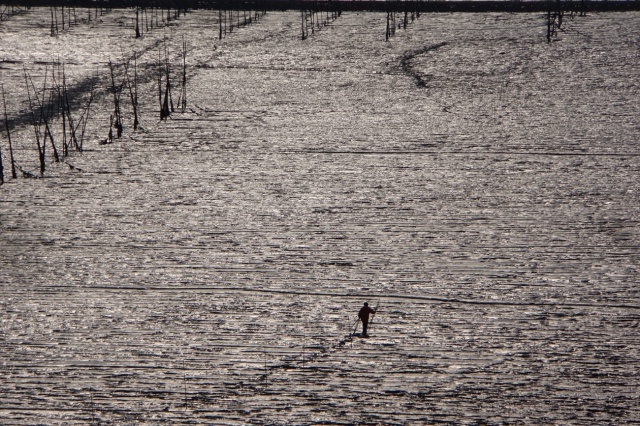 그 자신은 깨닫지 못하지만 풍경이 되어 살아가는 사람들. 풍경과 분리되지 않고 풍경 속에 녹아들어 풍경의 일부가 되어버린 사람들. 한운리 갯벌의 풍경은 마침내 저 어부로 인해 완성된다. 과거에 흔했던 갯벌의 풍경은 이제 전설이 되어가고 있다. 매립과 간척으로 갯벌이 사라져가는 시대. 갯벌이 사라지면서 그물을 치는 어부들도 사라져버렸다. 갯벌의 저 어부는 끝내 알지 못하리라. 그 자신이 갯벌 어업의 마지막 페이지를 장식하는 역사의 주인공이라는 사실을. 그래서 저 풍경은 장 프랑수아 밀레의 그림 <만종> 같다. 저것은 필시 갯벌의 ‘만종’이다.
