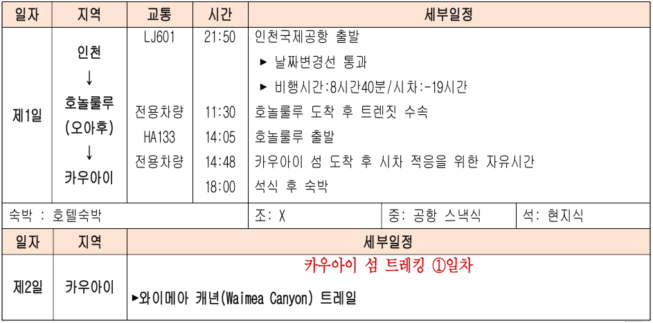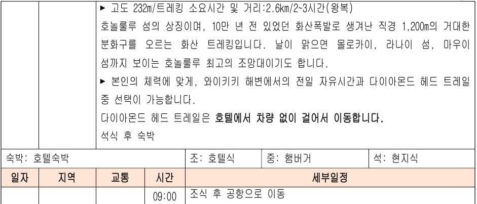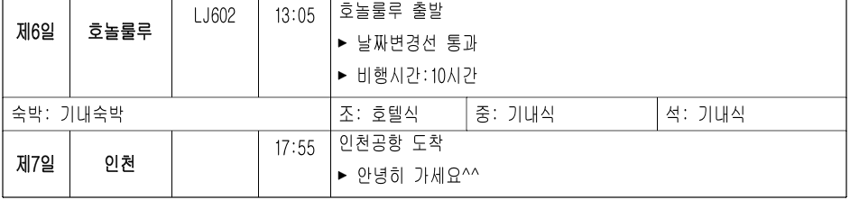 *상기 일정은 항공편 또는 현지사정에 의해 변경될 수 있습니다.
