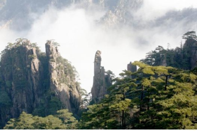 황산을 찾는 많은 사람들이 이곳에서 햇빛을 보고자 함이 아닙니다. 안개와 구름을 보기 위해서입니다. 안개가 자욱한 날이면 눈앞에 아무것도 보이지 않는 것 같습니다. 바로 그때 안개가 조금씩 움직이기 시작합니다. 마치 마법처럼, 솜사탕 같은 뿌연 장막 뒤에서 거친 바위 봉우리가 모습을 드러내기 시작합니다. 그리고는 몇 초 동안, 부드러운 백색의 바다 위에 신비롭게 떠 있습니다. 구름이 다시 한번 움직이면 이 환상적인 풍경도 다시 모습을 감춥니다.