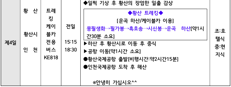 ※상기 일정은 항공 및 현지사정에 의해서 조정될 수 있습니다.