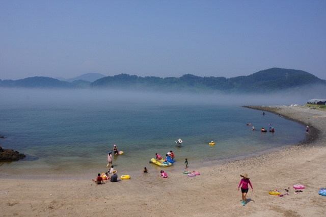 -자유시간(휴식, 책읽기, 낚시, 숙소 바로 앞 해수욕장이나 몽돌해수욕장에서 물놀이 등)