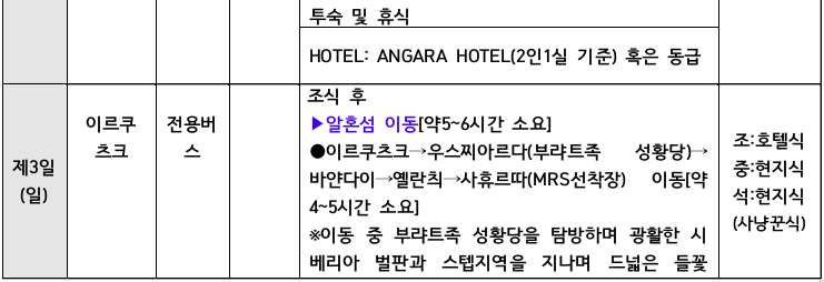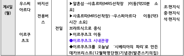 제4일에는 이르쿠츠크 관광의 날입니다.