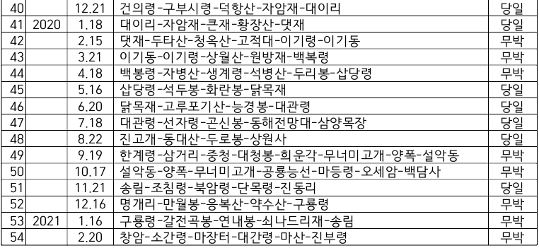 - 부득이한 경우(연휴나 명절) 산행일 변경