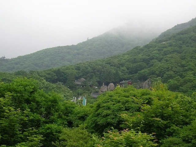 [법계사] 1450m. 지리산 천왕봉 동쪽 중턱, 해발 1450m에 있는 남한에서 가장 하늘과 가까운 곳에 위치한 절이다. 서기 544년(신라 진흥왕 5년) 인도에서 건너온 연기조사가 부처님 진신사리를 봉안하면서 창건했고, 1405년 정심선사(正心禪師)가 중창하였다. 그 뒤부터 수도처로 알려져 고승들을 많이 배출하였다. 6.25전쟁 때 불에 탔지만 워낙 높은 곳에 있어 재건을 못하고 토굴로 명맥을 이어오다 최근에야 법당이 세워졌다. 고려시대에 만든 것으로 보이는 법계사 삼층석탑(보물 제473호)이 법당 왼쪽에 거대한 암석을 기단으로 세워져 있다. 지리산 7대 사찰로 꼽히며 사찰 뒤로 암봉과 문창대가 보인다.