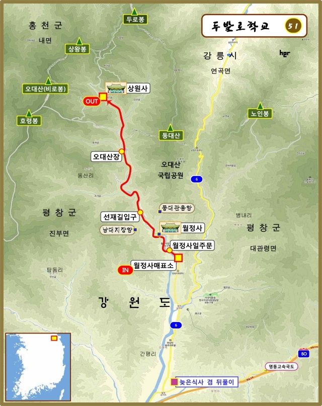 (상황에 따라 오대산장~상원사 구간은 버스 이동)