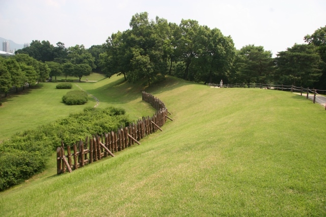 몽촌토성은 남한산성(南漢山城)에서 뻗어 내린 구릉지의 지형을 이용해 외성(外城)과 내성(內城)의 이중구조로 축조한 독특한 토성으로 진흙을 쌓아 성벽을 만들고 필요에 따라 경사면을 급하게 깎는 등 인공을 가하기도 하였습니다.