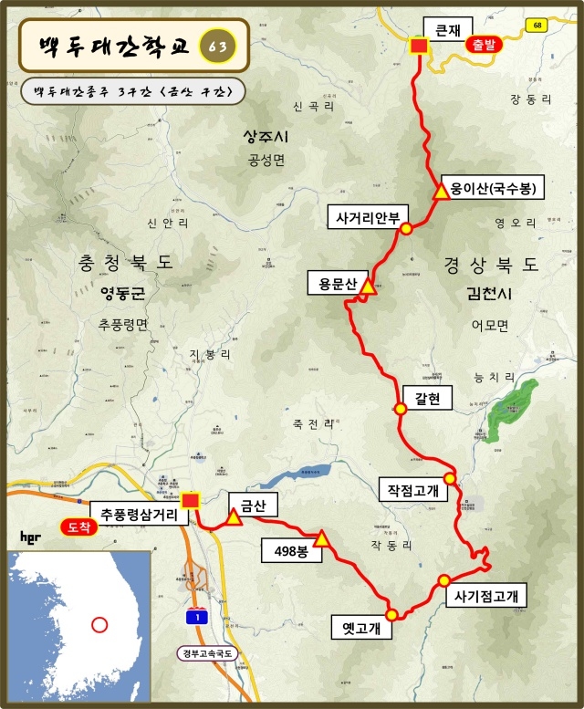 -산행코스 : 큰재-웅이산(국수봉)-용문산-작점고개-금산-추풍령