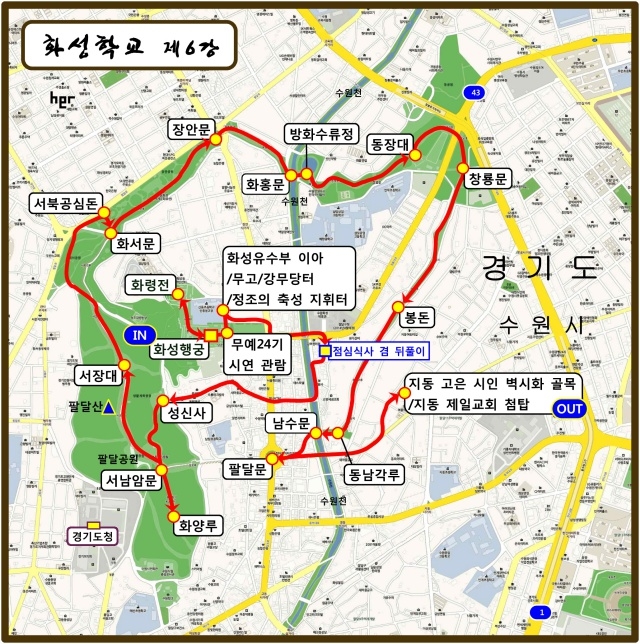 08:40 수원 화성행궁 정문 앞 모임. 수원 답사 현장에서 모입니다. 정시에 시작합니다.