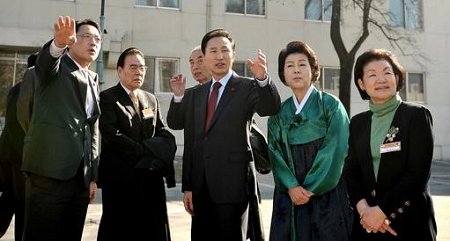 | ▲ 15일 문화예술인 신년인사회에 참석한 이명박 대통령 내외가 '현대미술관'이 건립될 기무사 부지를 유인촌 문화체육관광부 장관(왼쪽 끝)의 안내에 따라 둘러보고 있다. ⓒ청와대 |