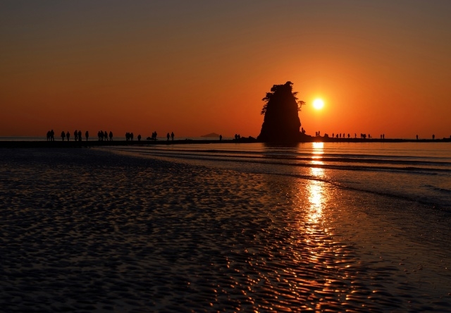 할미바위와 할아비바위로 불리는 바위섬은 해상왕 장보고의 부하 승언 장군이 전쟁터에 나간 후 돌아오지 않자 아내 미도가 일편단심 기다리다 죽어 망부석이 됐다는 전설이 내려옵니다. 시나브로 할미바위와 할아비바위 사이로 해가 들어오자, 때마침 썰물을 타고 길이 열립니다. 사람들은 그 길을 따라 할미바위로 나가 그대로 한 폭의 그림이 됩니다. 그렇게 노을길은 화려한 노을 속에서 마무리됩니다.