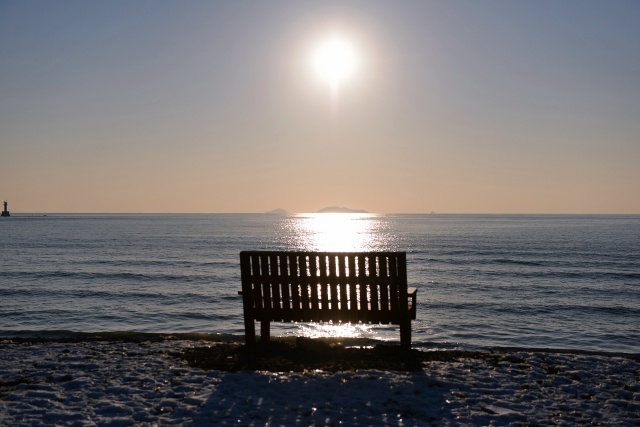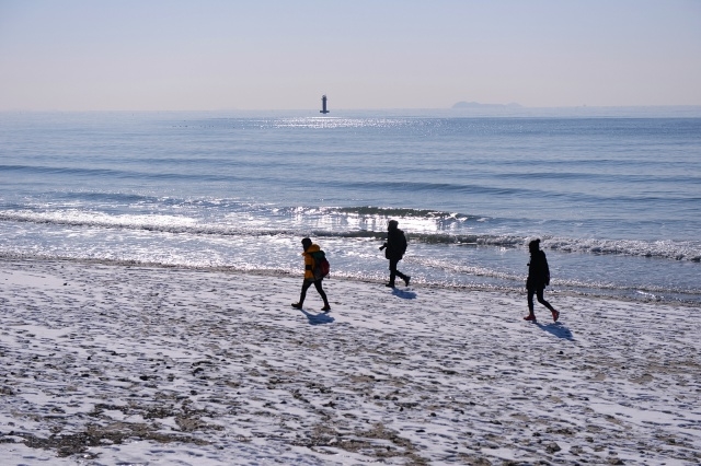 방포해변은 펜션과 모텔이 가장 많아 노을길 중 가장 번화가입니다. 방포의 바닷가는 평범하지만, 해변에 놓인 나무의자가 비범합니다. 이곳에 앉으면 따순 겨울 햇살이 부드럽게 얼굴을 어루만집니다. 그리고 수평선으로 훌쩍 내려온 해가 수면에서 반짝반짝 빛납니다. 방포에서 다시 야산을 오르면 꽃지가 시원하게 내려다보이는 방포전망대에 닿습니다. 이윽고 해가 점점 기울면서 ‘마법의 시간’이 펼쳐질 시간입니다.