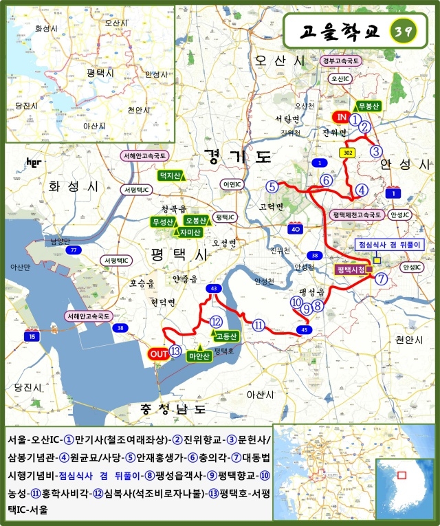 이날 답사 코스는 서울-오산IC-만기사(철조여래좌상)-진위향교-문헌사/삼봉기념관-원균묘/사당-안재홍생가-충의각-대동법시행기념비-점심식사 겸 뒤풀이-팽성읍객사-평택향교-농성-홍학사비각-심복사(석조비로자나불)-평택호-서평택IC-서울의 순입니다.