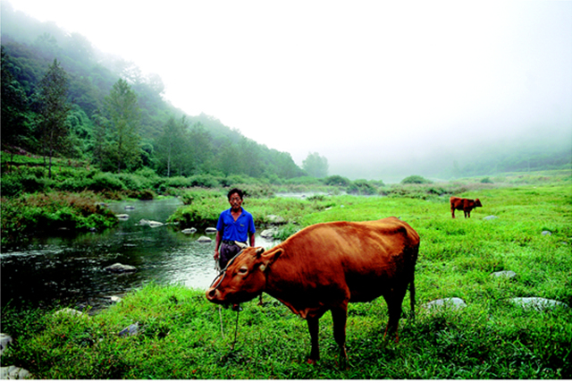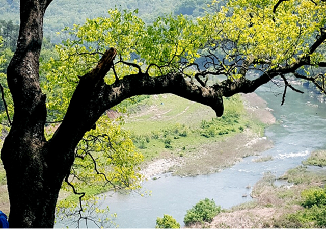 나는 1990년부터 91년까지 2년에 걸쳐 우리 동네 진메에서 천담 가는 길까지 강길을 50분을 걸어 출퇴근했다. 강은 두 개의 활 끝을 이어놓은 것같이 굽어 있었다. 숫자 ‘3’처럼 생겼다. ‘3’자의 이쪽 끝에서 저쪽 끝까지 길이가 4킬로미터다. 지프나 트럭은 힘들게나마 지나갈 수 있었지만 승용차는 다니기 어려운 이 길은 사람들의 발길이 닿지 않은 묵은 길이었다.