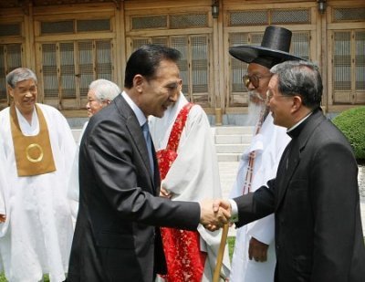| ▲ 이명박 대통령은 4일 낮 청와대로 종교계 지도자들을 초청해 오찬 간담회를 열었다. ⓒ청와대 |