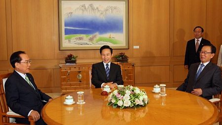 | ▲ 이명박 대통령이 한나라당 박희태 대표, 자유선진당 이회창 총재 등 야당 대표들을 청와대로 불러 회동을 가졌다. 민주당은 정국과 관련한 이 대통령의 사과를 요구하며 불참했다. ⓒ청와대 |