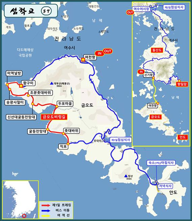 섬학교 제57강 여수 <금오도> <안도>와 <향일암> 일정은 다음과 같습니다.