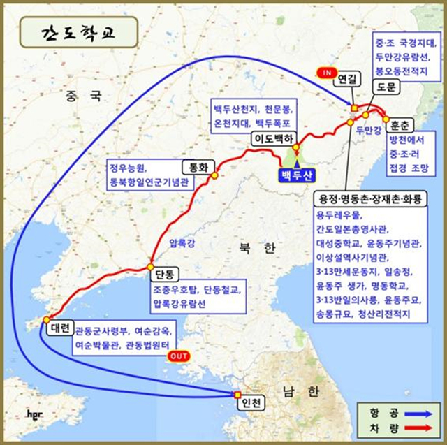 여러 차례의 수정과 보완을 거쳐 도달한 결론은 백두산을 비롯하여 두만강과 압록강 연안에 있는 도시인 훈춘, 연길, 용정, 도문, 통화, 단동, 대련과 민족의 영산 백두산을 둘러보고 그곳에서 벌어졌던 항일독립운동에 대한 이야기판을 벌여보기로 하였습니다.