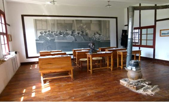 대성중학교 옛 건물 안에는 윤동주가 학교 다니던 시절의 교실 모습을 복원한 ‘윤동주교실’이 문을 열어, 수업 장면을 담은 그림을 걸어놓고 윤동주가 공부했던 책상 위에 윤동주 조각상이 놓여 있습니다.
