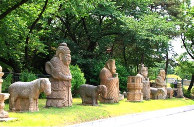 능에는 병풍석이 없고 난간석만 있으며 난간 석주에는 12지를 넣어 방위를 표시하였고 위쪽에 놓인 왕의 능에만 곡장(曲墻)을 두르고 있는데 이것은 부부의 예로서 한 곡장 안에 두 봉분이 들어 있기 때문입니다.